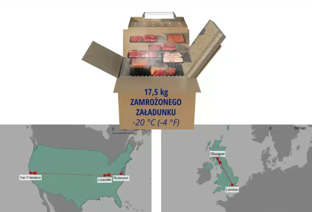 Ocena obejmuje różne scenariusze transportu, w tym transport mrożonek i świeżej żywności, trasy 72-godzinne i 24-godzinne w Stanach Zjednoczonych oraz trasy 48-godzinne i 24-godzinne w Wielkiej Brytanii. Jako pojemniki do transportu suchego lodu uwzględniono zarówno styropian, jak i ekologiczne kartony. Wyniki są następujące:
