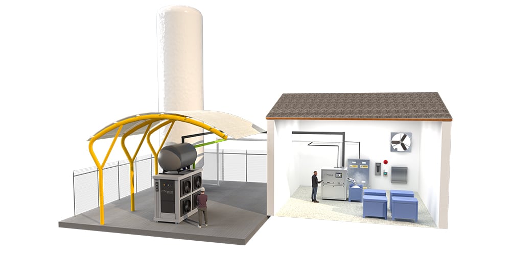 Our RE-CO2 Recovery Systems integrate easily with all Cold Jet (and many competitor) dry ice production systems, including our Integrated Blasting Systems!
